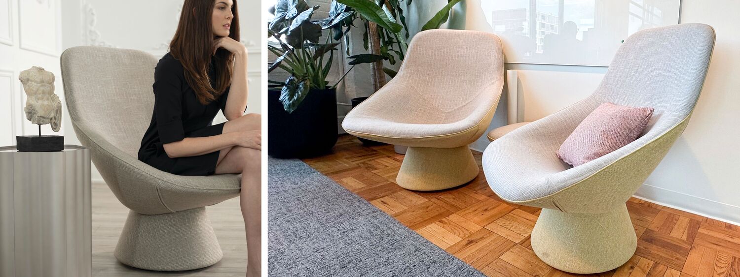 Left: Pala Lounge CHair at photoshoot. Right: Pala Lounge Chair at the Toronto Living Lab.