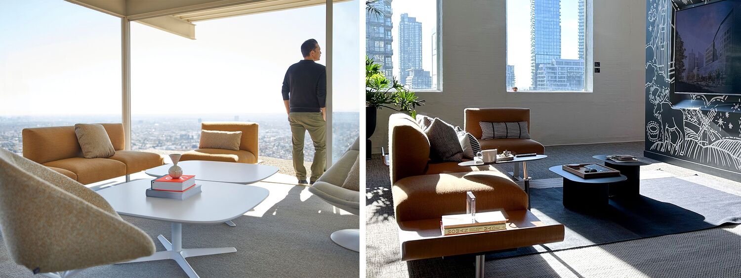 Lower Left: Vettore modular Sofa at photoshoot. Lower Right: Vettore Modular Sofa at The Toronto Living Lab.
