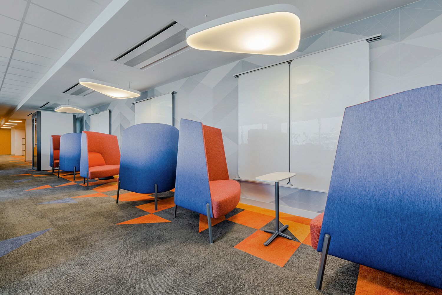 Bright colors and bold patterns express MSCI’s avant-garde approach to research and development. Tones selected radiate serenity in open workspaces to help focus, while social spaces are optimized with vibrant colors.