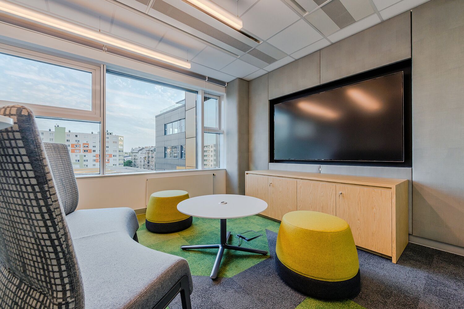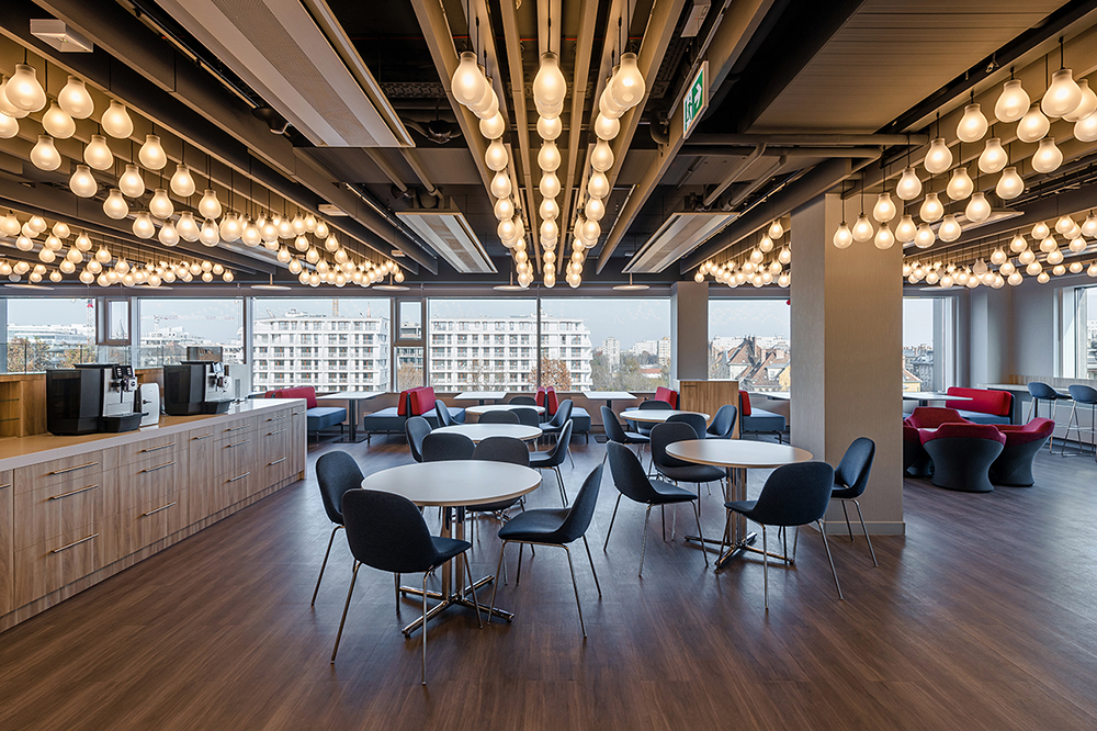 With more than thirty offices around the world, MSCI’s design objectives are to express its values while displaying the colorful cultures of each region. The Budapest office design was preceded by extensive research, including on-site monitoring of activities, focus groups and staff interviews. The resulting agile multifunctional work environment showcases MSCI’s evolving design principles.